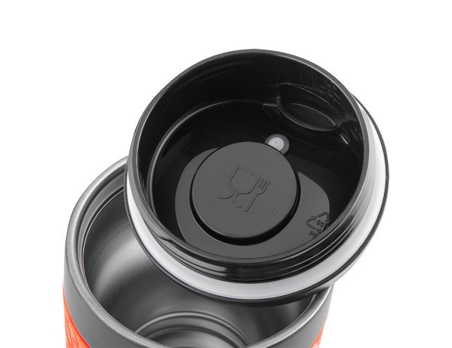 Copo antiqueda em aço inox parede dupla de 260ml, conserva temperatura quente ou fria, pegador em silicone e bico com tampa. Na parte inferior da caneca existe uma ventosa que por sucção previne possiveis quedas causadas por batidas, choques e colisões.