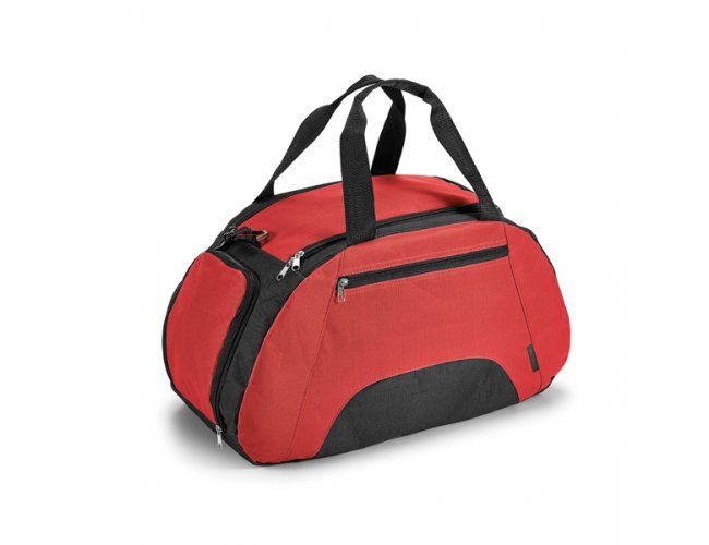 Bolsa esportiva em 600D com fundo em placa semi-rígida. Bolso frontal e bolso lateral para calçado, ambos com zíper. Alça de ombro ajustável. Capacidade até 30 L. 520 x 300 x 255 mm