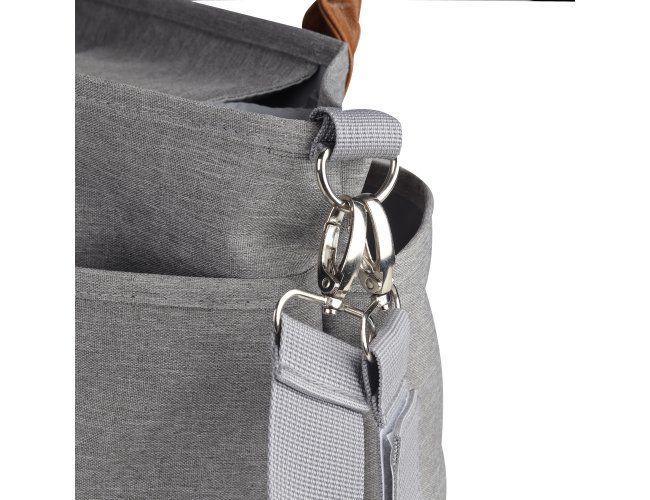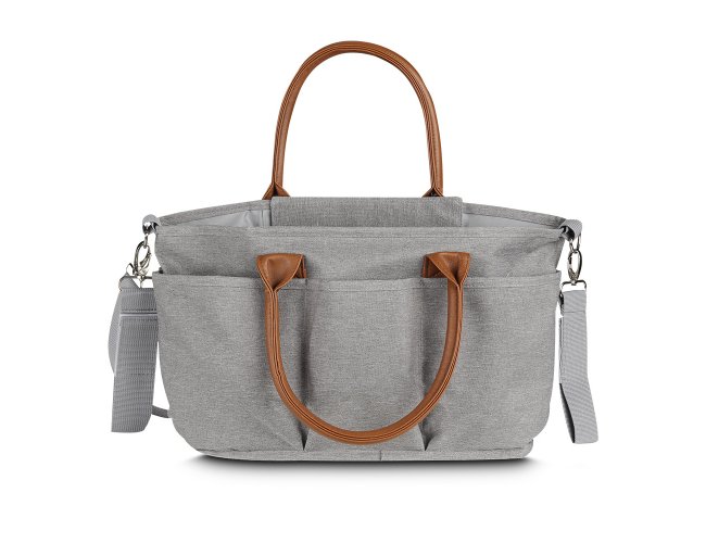 Bolsa Multifuncional em poliéster 300D com detalhes em PU e interior em 210D, possui 5 compartimentos externos. Conta com alças de ombro e mão em PU, engate para carrinho de bebê e velcro para fechamento interno.