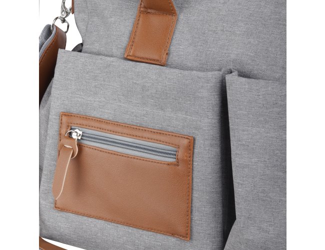 Bolsa Multifuncional confeccionada em poliéster 300D e PU e interior em 210D, ideal para o dia a dia. Conta com 6 compartimentos externos com botão de ímã, sendo um deles com detalhe em zíper. Possui alça de ombro ajustável em poliéster com detalhes em PU, alça de mão em PU e suporte para carrinho de bebê. O interior é totalmente forrado em nylon, oferecendo 4 divisórias internas e um amplo compartimento principal para máxima organização. A base da bolsa é reforçada com PU, garantindo durabilidade e resistência.