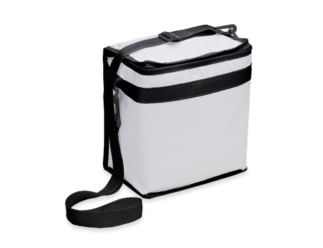 Bolsa térmica de bagum sintético com capacidade de 10 litros, contém revestimento interno em polietileno atóxico soldado (não vaza), bolso sintético externo de matelassê e alça tiracolo ajustável de polipropileno.
