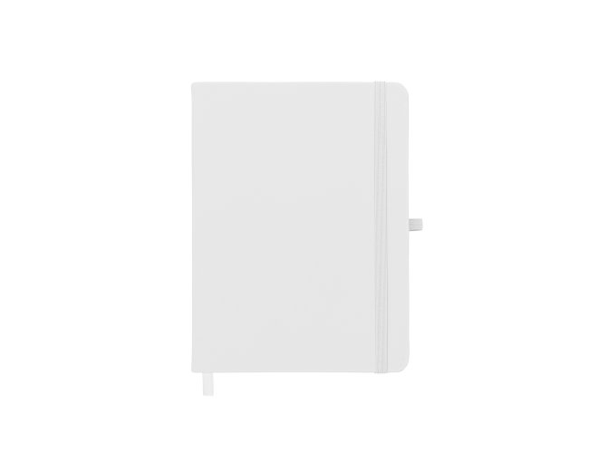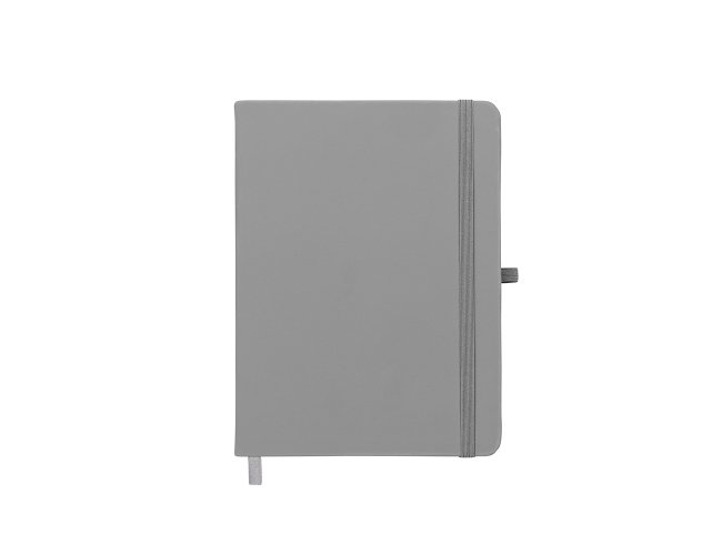 Caderneta emborrachada com porta caneta em nylon, marcador de página em cetim e fita elástica para lacre. Contém aproximadamente 80 folhas pardas sem pauta. OBS.: PEDIDOS MÚLTIPLOS DE 5 PEÇAS!