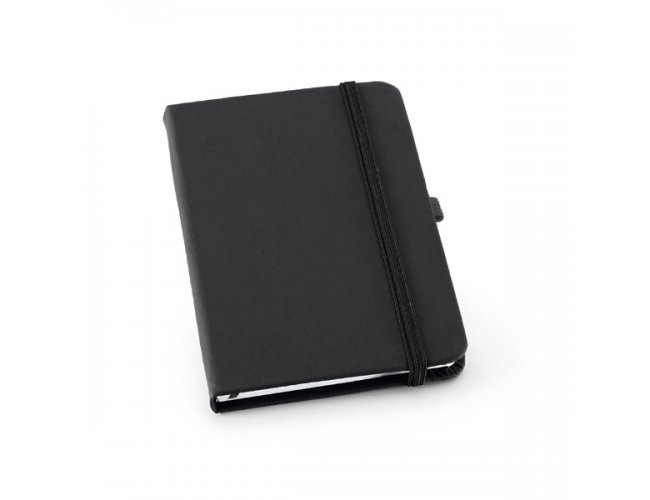 Caderno A6 de capa dura em c. sintético, com 160 páginas lisas. 90 x 140 mm