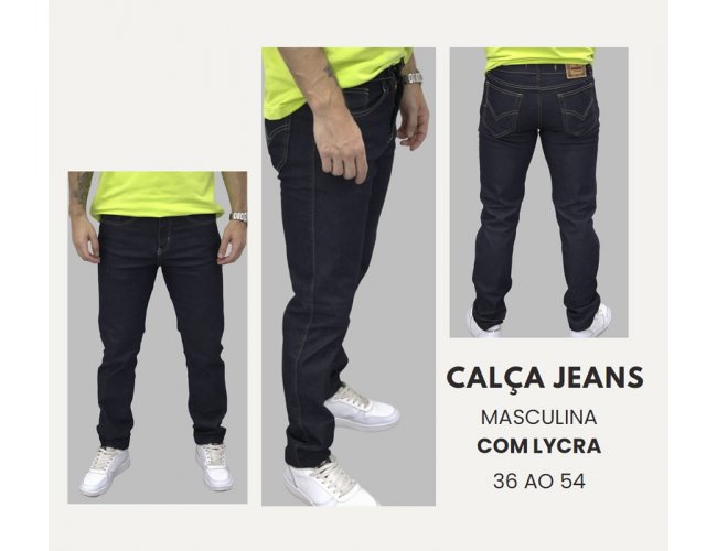 Calça Jeans Tradicional Masculina C/ Lycra. Composição: 81% Algodão, 17% Poliéster, 2% Elastano