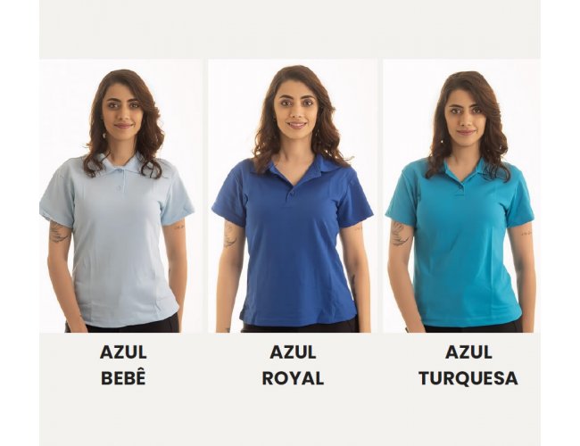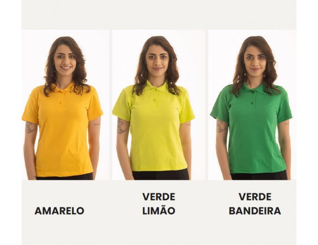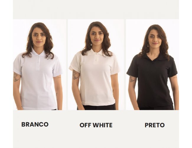 Camisa Polo Feminina Piquet PA. Composição: 50% Algodão 50% Poliéster