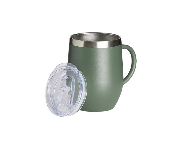 Caneca térmica de inox com capacidade de 350ml, material livre de BPA. Contém tampa acrílica com bocal e trava de segurança.