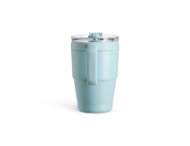 Caneca térmica em inox com pintura eletrostática e capacidade de até 600ml. Apresenta estrutura de parede dupla, base antiderrapante e tampa plástica com vedação a vácuo, protetor emborrachado para o bocal com acesso para canudo. Acompanha canudo de inox com ponta removível em plástico.