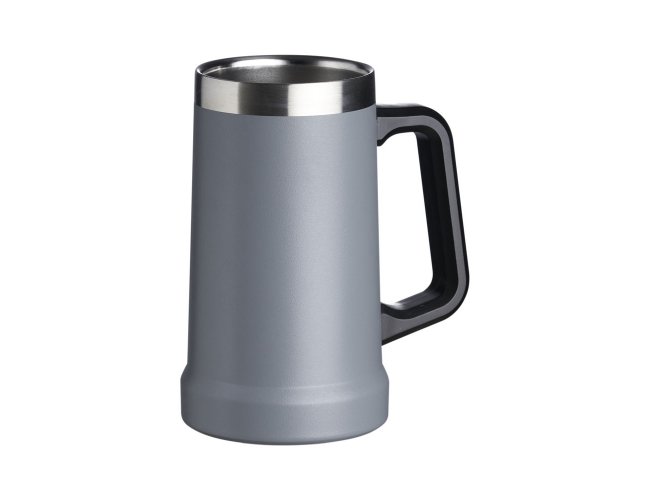 Caneca térmica de inox com pegador plástico, capacidade de 700ml.
