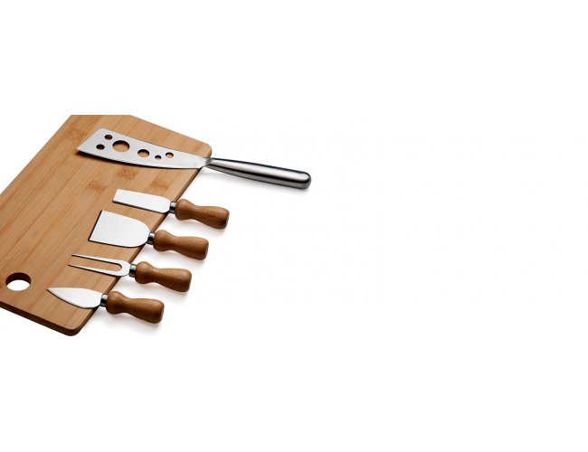 Conj. Para Queijo Em Bambu / Madeira / Inox Oregon - 6 Pçs KT-90023
