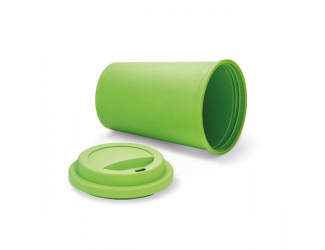 Copo para viagem. Fibra de bambu e PP. Com tampa. Capacidade até 450 ml. Food grade. ø93 x 134 mm