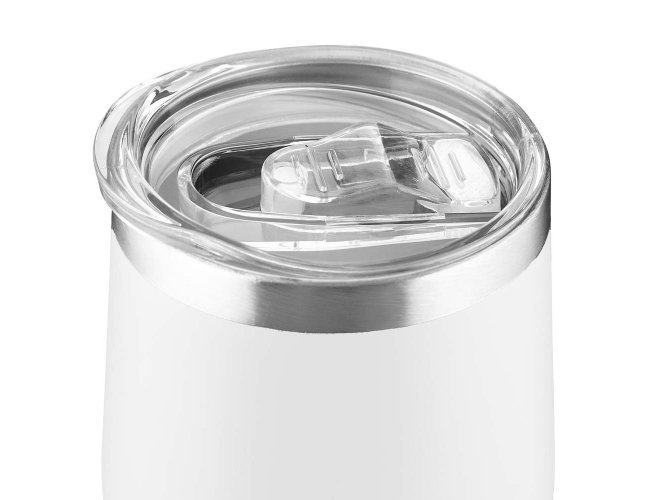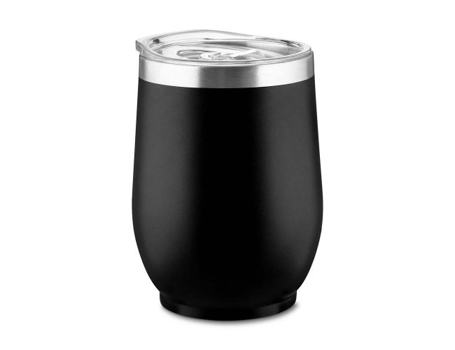 Copo térmico em aço inox com parede dupla, pintura fosca, detalhe em aço inox, tampa plástica com anel de silicone para vedação,abertura na tampa para consumo, capacidade de 350ml.