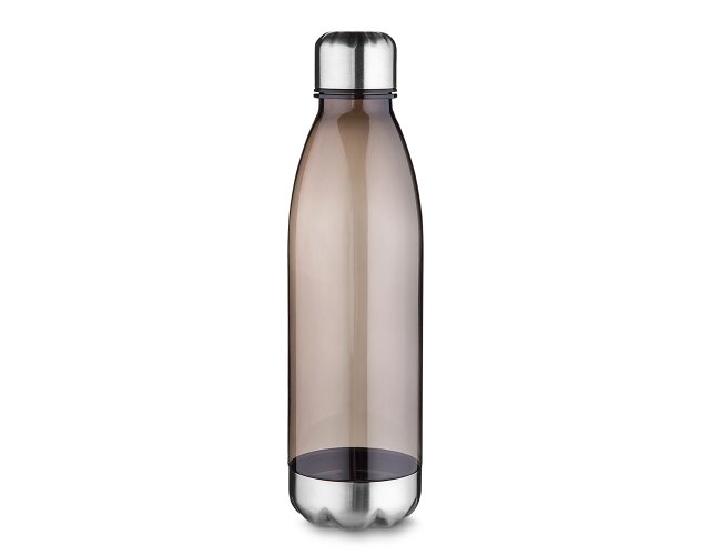 Garrafa plástica com capacidade de até 700 ml. Tampa rosqueável com anel de silicone para vedação, base em metal. Plástico Utilizado PC (Policarbonato)