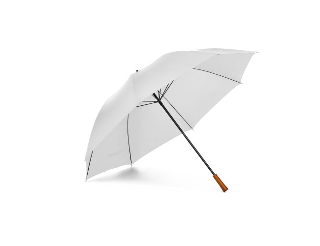 Guarda-chuva de grande portaria em poliéster pongee 190T, com varetas e haste em fibra de vidro e pega em madeira. ø1375 x 855 mm