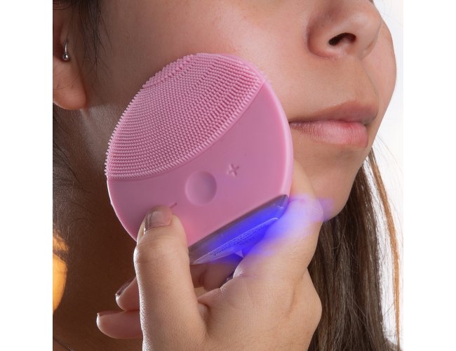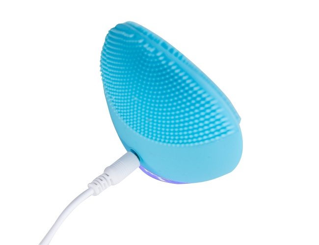 Massageador Facial com tecnologia T-Sonic. Produzido em silicone resistente a água, a escova possui cerdas macias que limpam e massageiam a face. Sua parte frontal possui um botão de acionamento, além de dois botões para alteração entre os 6 modos de intensidade. A limpeza da face através do uso do produto, limpa profundamente os poros melhorando vários aspectos da pele, aumentando o fluxo sanguíneo, prevenindo contra rugas e outras impurezas na pele. O produto possui bateria recarregável com Voltagem de 3.7V e Potência de 0.25W. Acompanha cabo USB.
