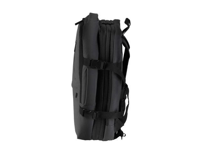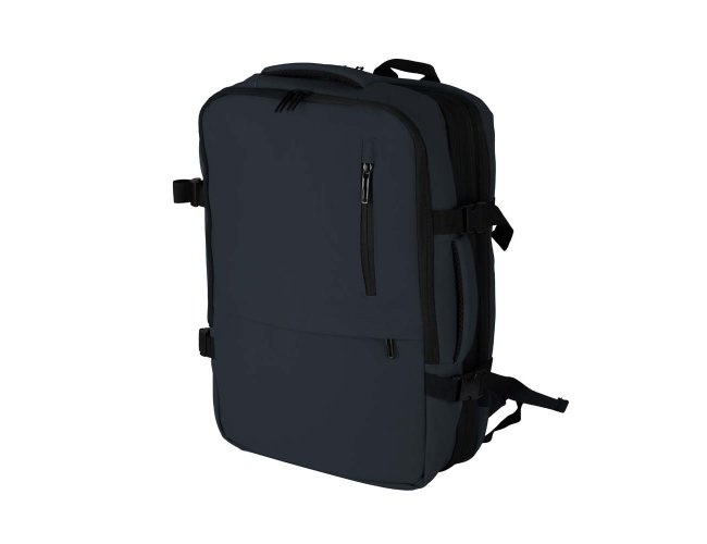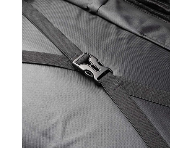 Mochila Pasta confeccionada em poliéster 600D resinado, com dois bolsos frontais e expansor. Possui três engates rápidos, engate para mala de viagem, além de alças de mão e de ombro acolchoadas para maior conforto. Conta com dois compartimentos internos para pequenos objetos, tablet e notebook de até 15,6”, além de elástico interno para manter as roupas no lugar.