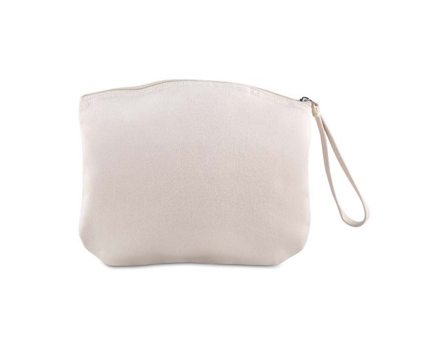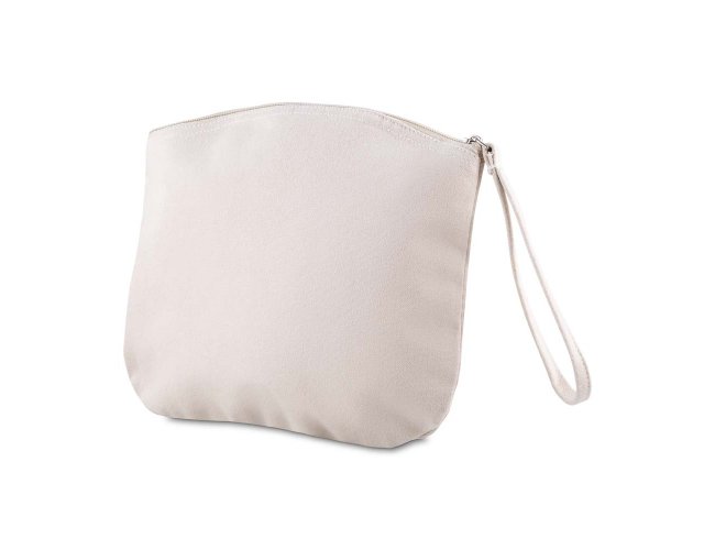 Necessaire confeccionada em algodão reciclado de 340 g/m², conta com alça de mão em algodão que facilita o transporte, sendo prática e resistente para organização de objetos pessoais.