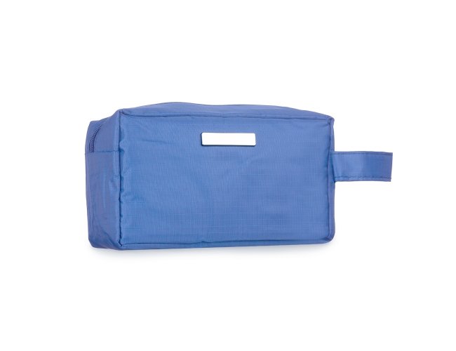 Nécessaire de pvc resistente à água com plaquinha metálica fixa.