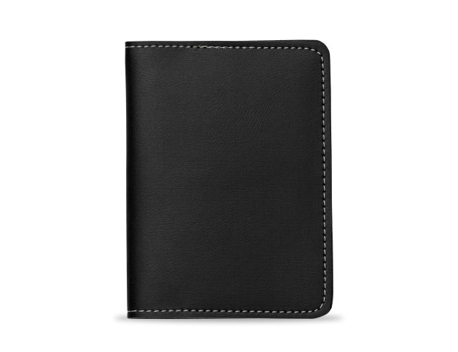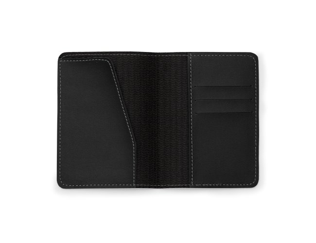 Porta-passaporte Bidins em couro sintético, possui três compartimentos na lateral para cartões.