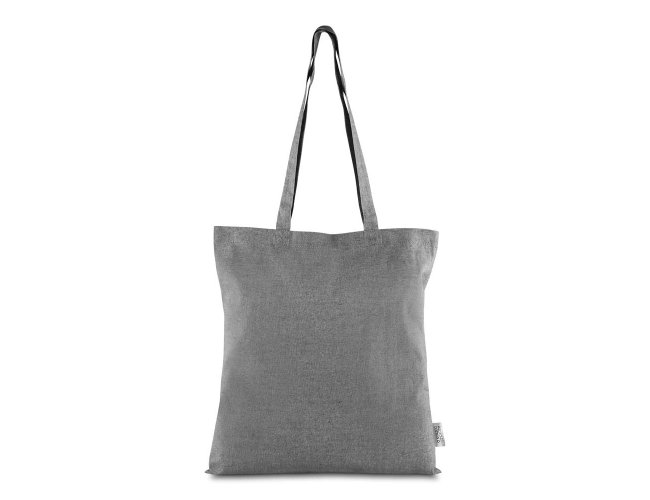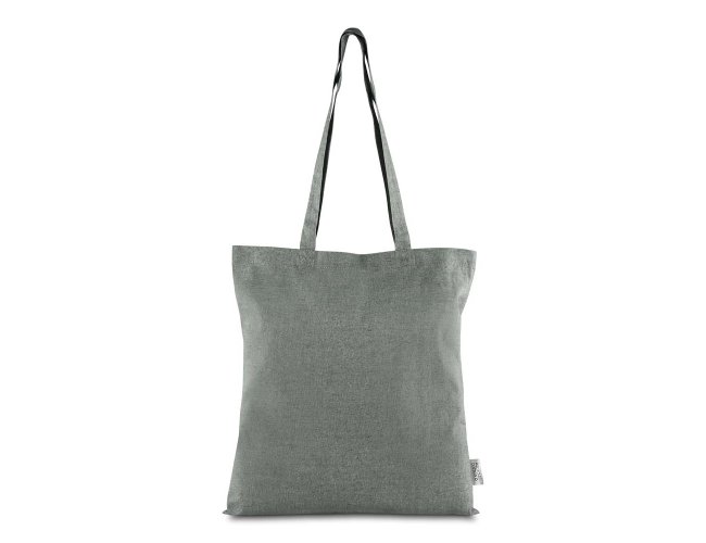 Sacola confeccionada em algodão mescla reciclado, gramatura 140 g/m². Possui alça de 65 cm ponta a ponta.