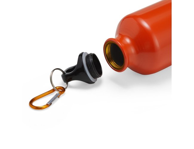 Squeeze de alumínio com capacidade de 420ml com tampa plástica rosqueável. Acompanha mosquetão.